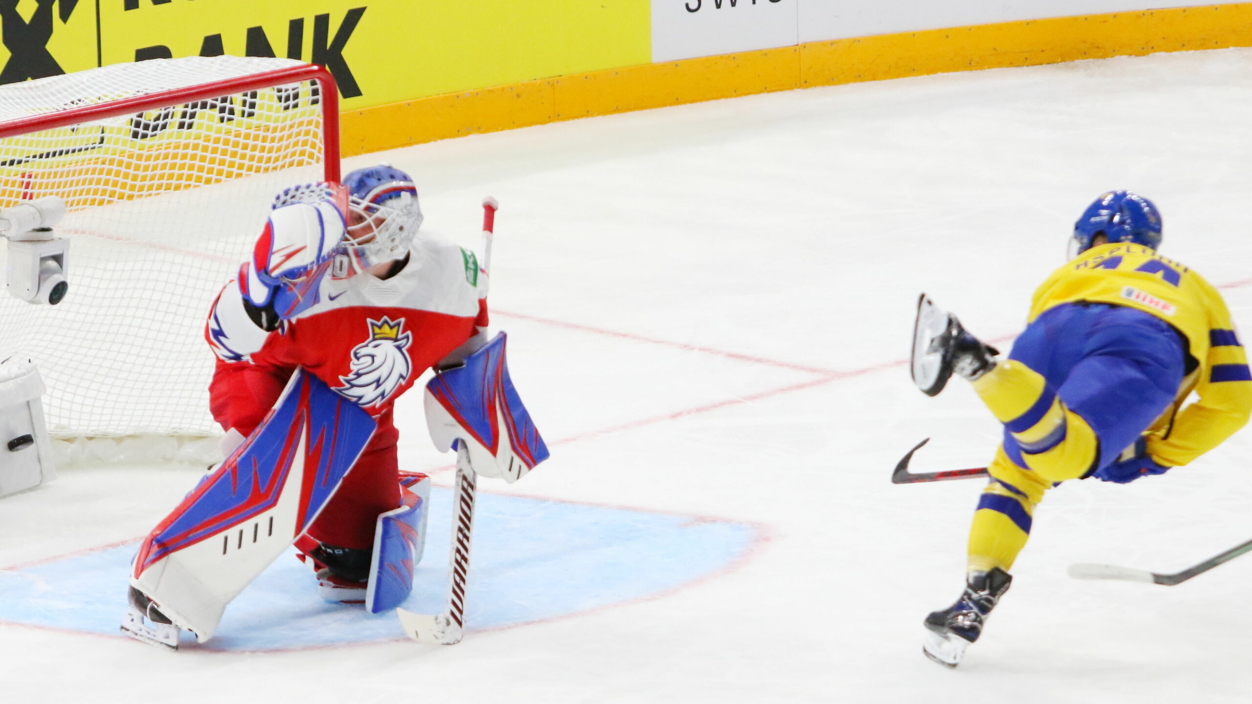 6T4A6047 15. Mai 2022 2560 × 1440 Schweden bezwingt Tschechien 5:3 IIHF Ice Hockey World Championship CZE – SWE Karel Vejmelka #50, Rasmus Asplund #74 Nokia Arena, Tampere © Puckfans.at/Andreas Robanser