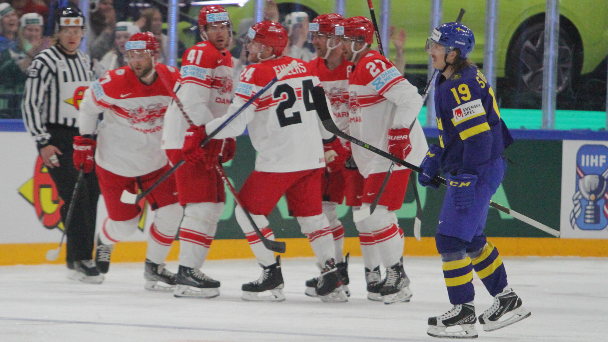IMG_8730 22. Mai 2023 2560 × 1440 Schweden gewinnt gegen Dänemark IIHF World Championship 2023 DEN – SWE Nicklas Jensen #17, Jesper Jensen Aabo #41, Nikolaj Ehlers # 24, Anders Krogsgaard #27, Marcus Sörensen #19 Nokia Arena, Tampere © Puckfans.at / Andreas Robanser
