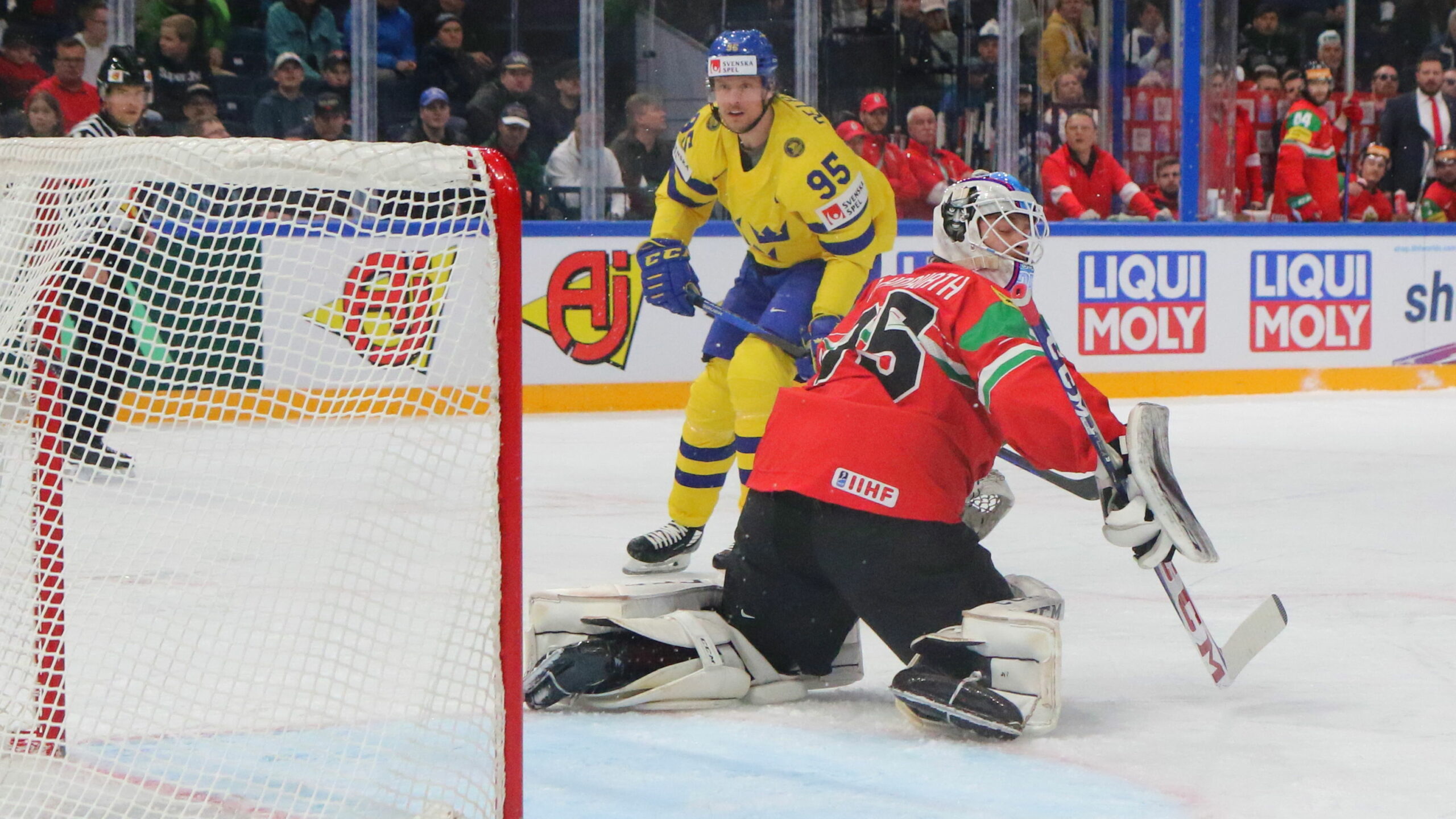 6T4A6603 18. Mai 2023 2560 × 1440 Schweden siegt klar – 7:1 gegen Ungarn IIHF World Championship 2023 HUN – SWE Jacob De La Rosa #95, Dominik Horváth #35 Nokia Arena, Tampere © Puckfans.at / Andreas Robanser