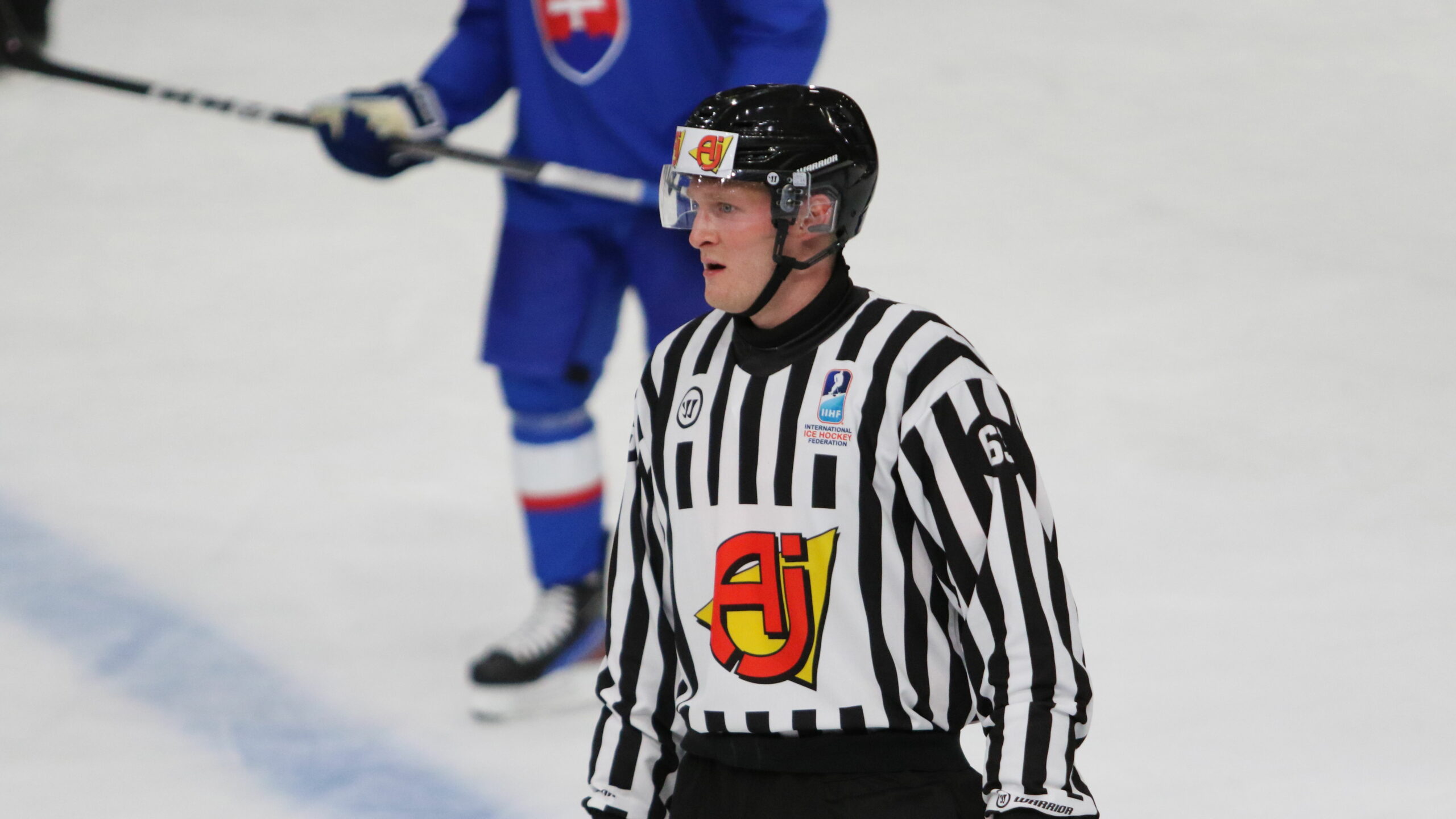 6T4A2447 27. Dezember 2023 2560 × 1440 WJC – Schweiz bleibt gegen die Slowakei torlos IIHF World Juniors 2024 SVK – SUI, Linesman Simon Riecken #63 Frolundaborg Arena, © Puckfans.at / Andreas Robanser