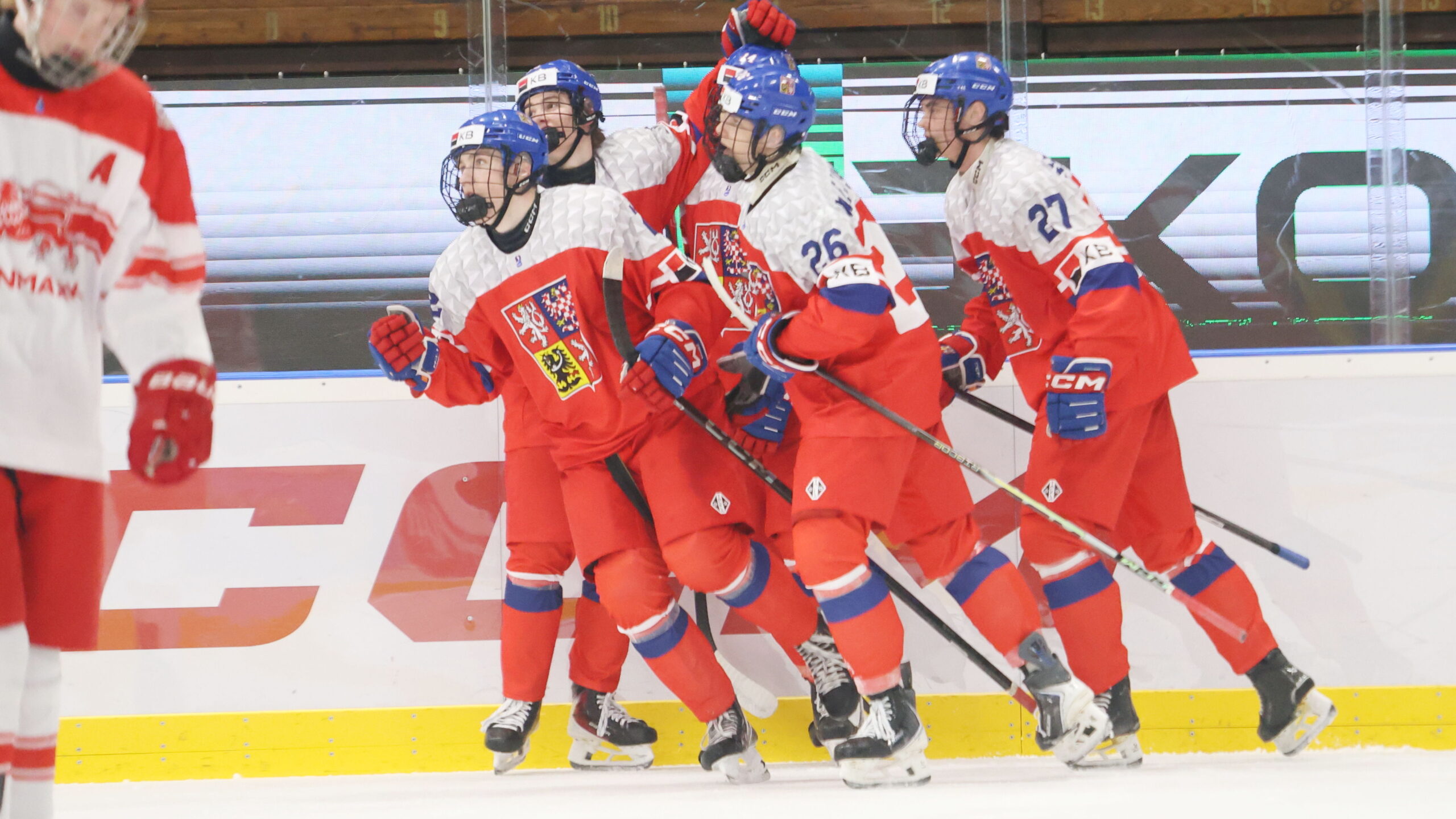 David Huk #22, Josef Holejsovsky #26, David Sedlacek #27, IIHF U18 World Championship 2026 CZE – DEN, Vladimír Dzurilla Arena, Bratislava, © Puckfans.at / Andreas Robanser