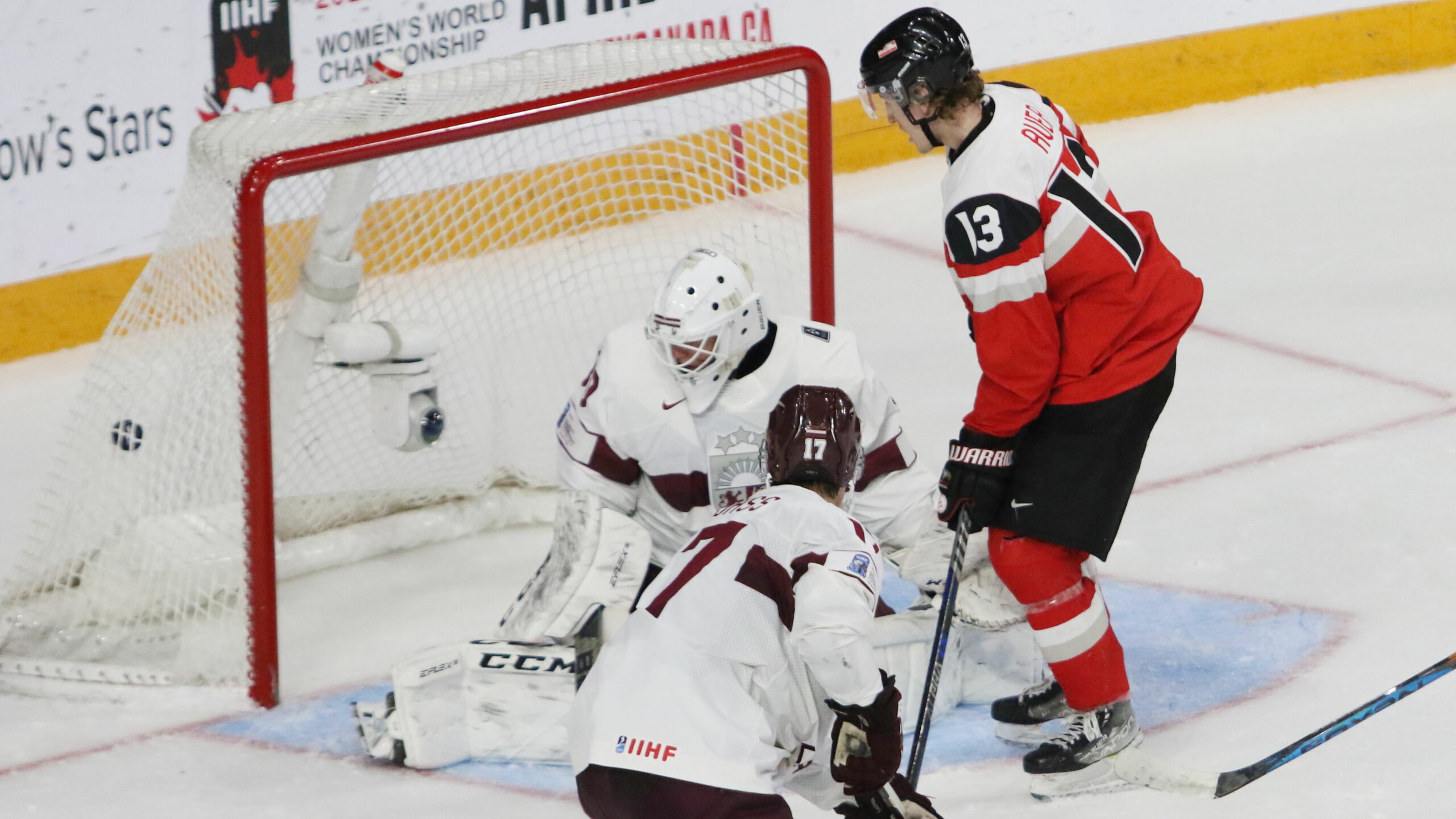6T4A6966 4. Januar 2023 2560 × 1440 U20 – Abstieg trotz starker Leistung IIHF World Juniors 2023 Relegation Game 2 AUT – LAT Patriks Berzins #30, Bogdans Hodass #17, Luca Auer #13 Scotiabank Centre, Halifax © Puckfans.at / Andreas Robanser