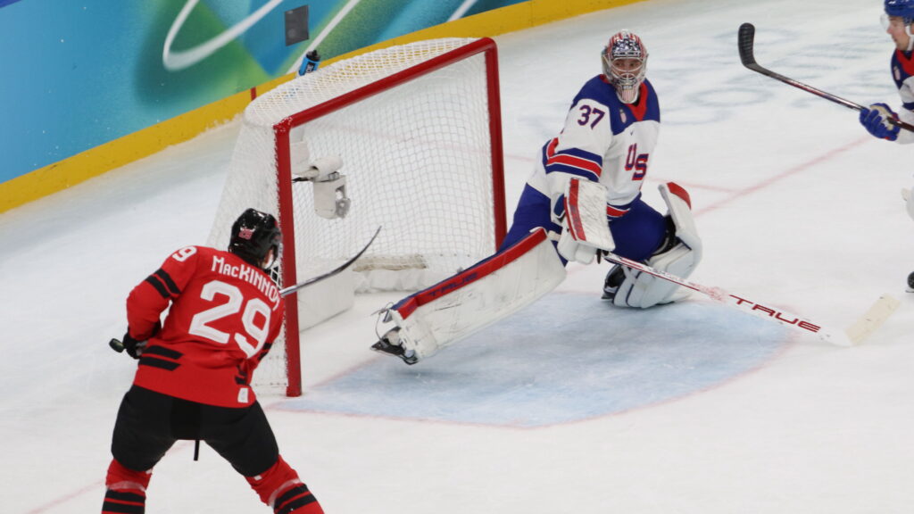 Das Spiel selbst hielt, was es versprach. Die USA begannen effizient. Matt Boldy traf früh zur Führung. Kanada wirkte defensiv unsauber, Binnington nicht ganz stabil. Doch danach übernahm Kanada zunehmend die Kontrolle. 19:8 Schüsse im zweiten Drittel. Druck, Traffic vor dem Tor, Solo-Läufe, Chaos-Szenen im Slot. Devon Toews mit leerem Tor – Hellebuyck mit dem Stock dazwischen. Celebrini allein vor dem Tor – gestoppt. MacKinnon mit bester Möglichkeit – vergeben. Kanada spielte phasenweise auf höchstem technischen Niveau, schnell, kreativ, dominant. Doch der Puck wollte nicht ins Netz.