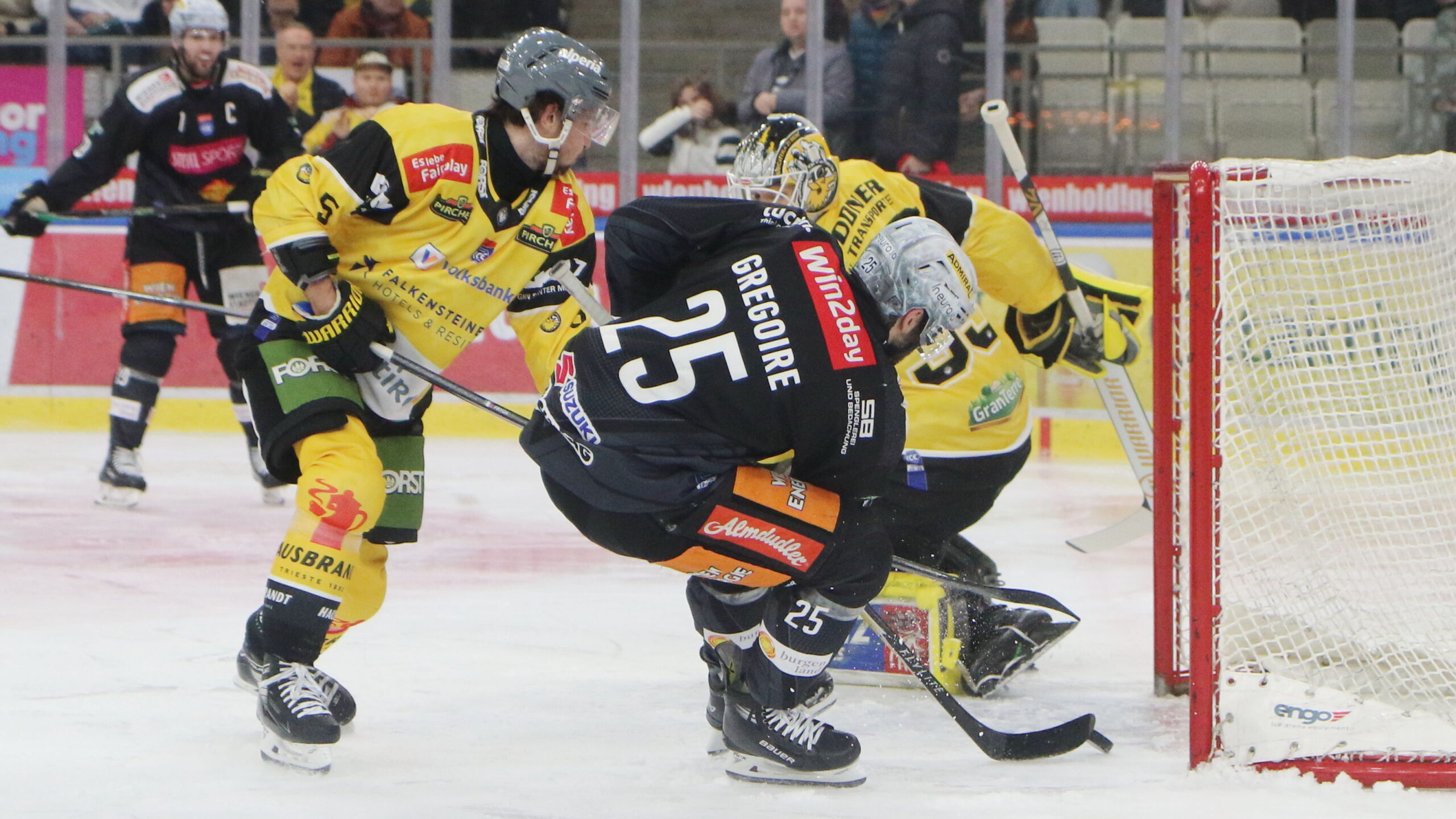 6T4A8201 23. Januar 2026 2560 × 1440 Wieder entschied ein Treffer Adam Almquist #5, Jérémy Grégoire #25, Jakob Rabanser #35, ICEHL Round 42 Vienna Capitals – HC Pustertal, Steffl Arena, © Puckfans.at / Andreas Robanser