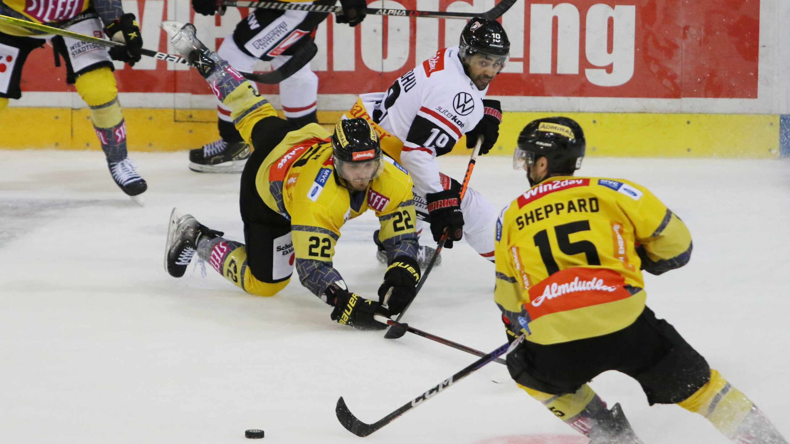 6T4A8670 27. September 2022 2560 × 1440 Wiener holen die ersten drei Punkte ICEHL Round 3: Vienna Capitals – Pioneers Vorarlberg Max Zimmer #22, Tyler Sandhu #19, James Sheppard #15 Steffl Arena, © Puckfans.at/Andreas Robanser