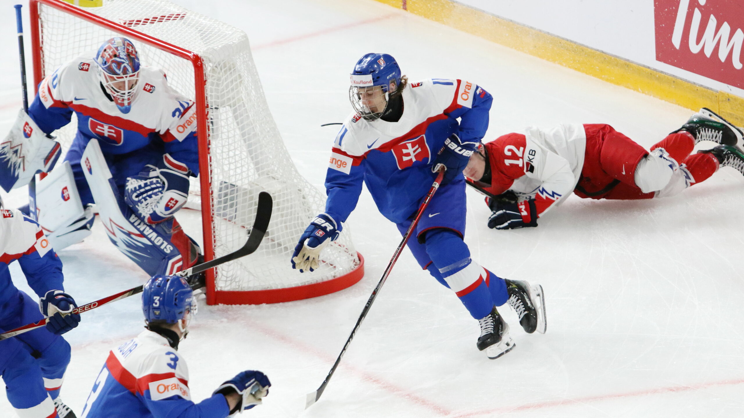 6T4A1058 26. Dezember 2023 2560 × 1440 WJC – Die Slowakei fertigt Tschechien ab IIHF World Juniors 2024 SVK – CZE Adam Gajan #30, Luka Radivojevic #11, Dominik Rymon #12 Arena Frölundaborg, © Puckfans.at / Andreas Robanser