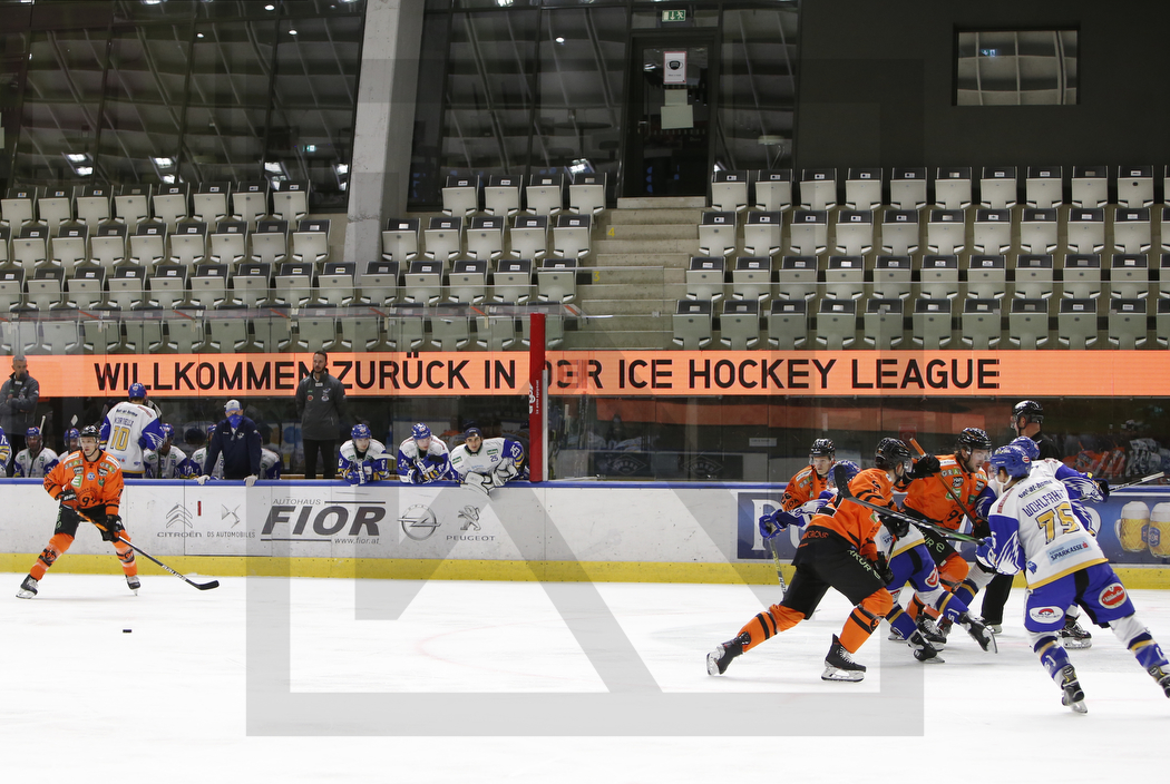 WK20201108_046 8. November 2020 1050 × 704 WK20201108_046 GRAZ, AUSTRIA, 08.Nov. 2020 – Moser Medical Graz 99ers vs. EC GRAND Immo VSV. Image shows Welcome back to the league banner. Photo: Werner Krainbucher