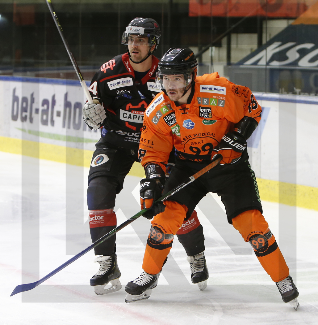 WK20201113_041 13. November 2020 1030 × 1050 WK20201113_041 GRAZ, AUSTRIA, 13.Nov. 2020 – Moser Medical Graz 99ers vs. Iclinic Bratislava Capitals. Image shows Sacha GUIMOND #44 (Iclinic Bratislava Capitals) & Ken OGRAJENSEK #18 (Moser Medical Graz 99ers). Photo: Werner Krainbucher