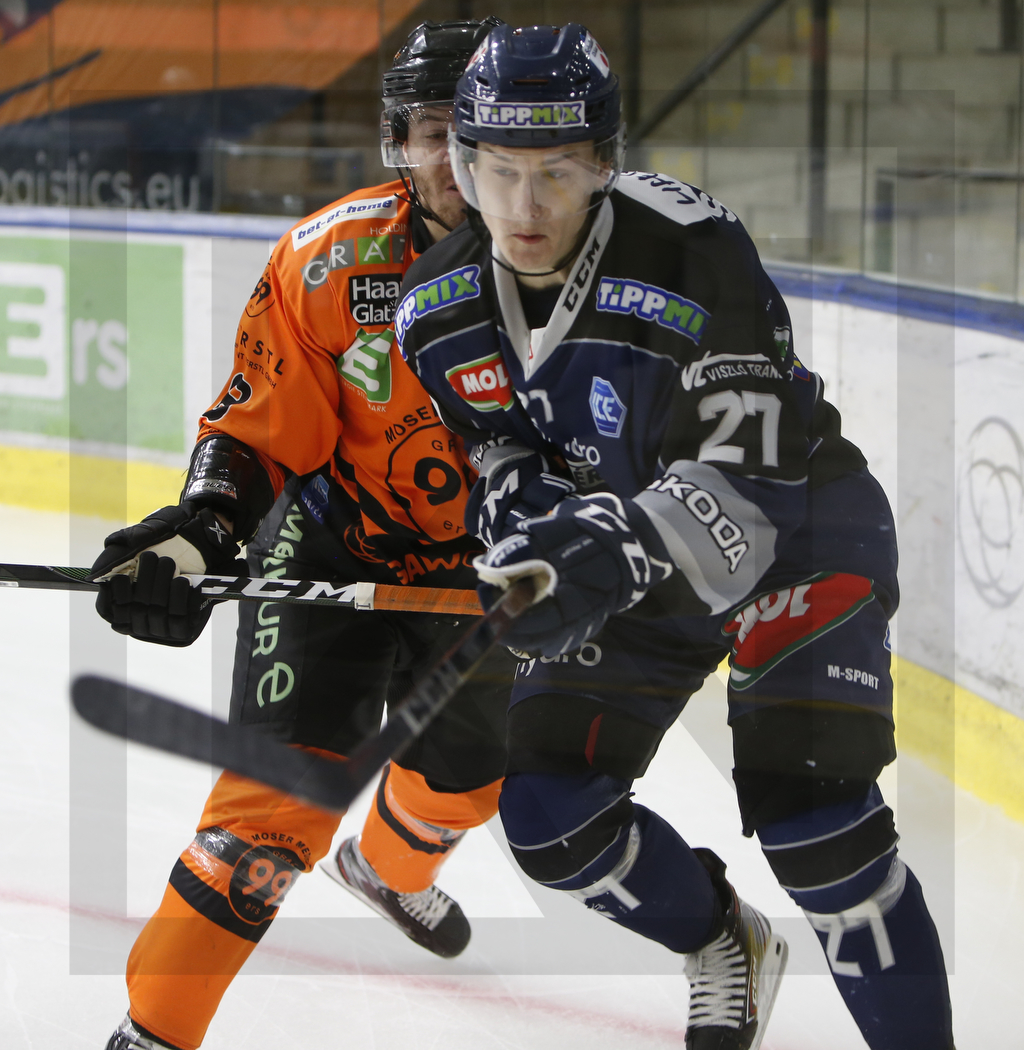 WK20201219_0007 19. Dezember 2020 1024 × 1050 WK20201219_0007 GRAZ, AUSTRIA, 19.Dec. 2020 – Moser Medical Graz 99ers vs. Hydro Fehervar AV 19. Image shows Ken OGRAJENSEK #18 (Moser Medical Graz 99ers) & Bence SZABO #27 (Hydro Fehervar AV 19). Photo: Werner Krainbucher
