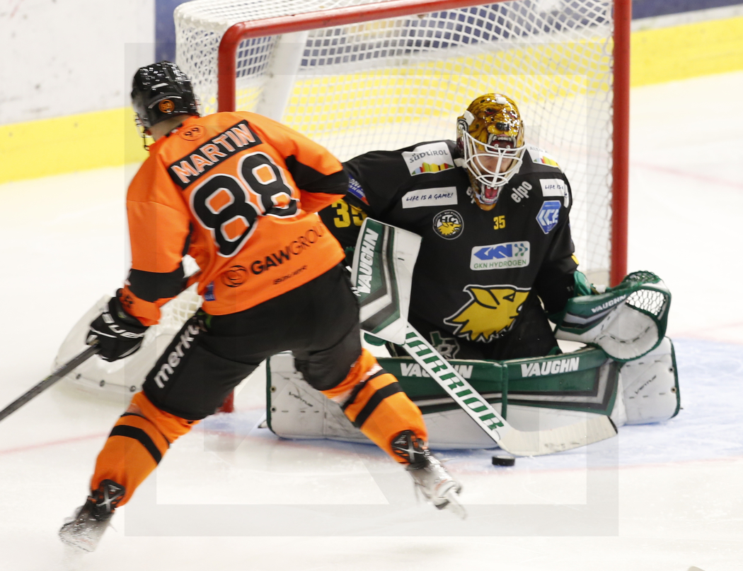 WK20210926_0177 26. September 2021 1050 × 808 WK20210926_0177 GRAZ, AUSTRIA, 26.Sep. 2021 – Moser Medical Graz 99ers vs. HC Pustertal Wölfe. Image shows Joey MARTIN #88 (Moser Medical Graz 99ers) & Thomas SHOLL #35 (HC Pustertal Wölfe). Photo: Werner Krainbucher