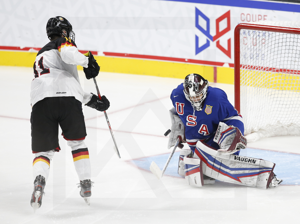 WK20220731_0667 1. August 2022 1050 × 786 WK20220731_0667 RED DEER, CANADA, Peavey Mart Centrium, 31.Jul. 2022 – Preliminary Round, USA vs. GER. Image shows Raphael JAKOVLEV #11 (Germany) & Calvin VACHON #30 (USA). Photo: © Werner Krainbucher