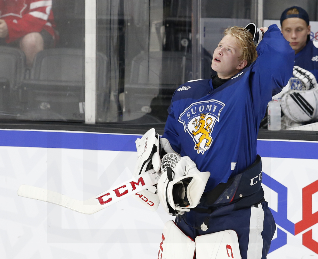 WK20220801_1060 2. August 2022 1050 × 856 WK20220801_1060 RED DEER, CANADA, Peavey Mart Centrium, 01.Aug. 2022 – Preliminary Round, FIN vs. USA. Image shows Eemil VINNI #1 (Finland). Photo: © Werner Krainbucher