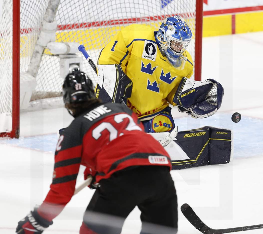 WK20220806_0996 7. August 2022 1050 × 934 WK20220806_0996 RED DEER, CANADA, Peavey Mart Centrium, 06.Aug. 2022 – Gold Medal Game, CAN vs. SWE. Image shows Gerber HOWE #22 (Canada) & Noah ERLINDEN #1 (Sweden). Photo: © Werner Krainbucher
