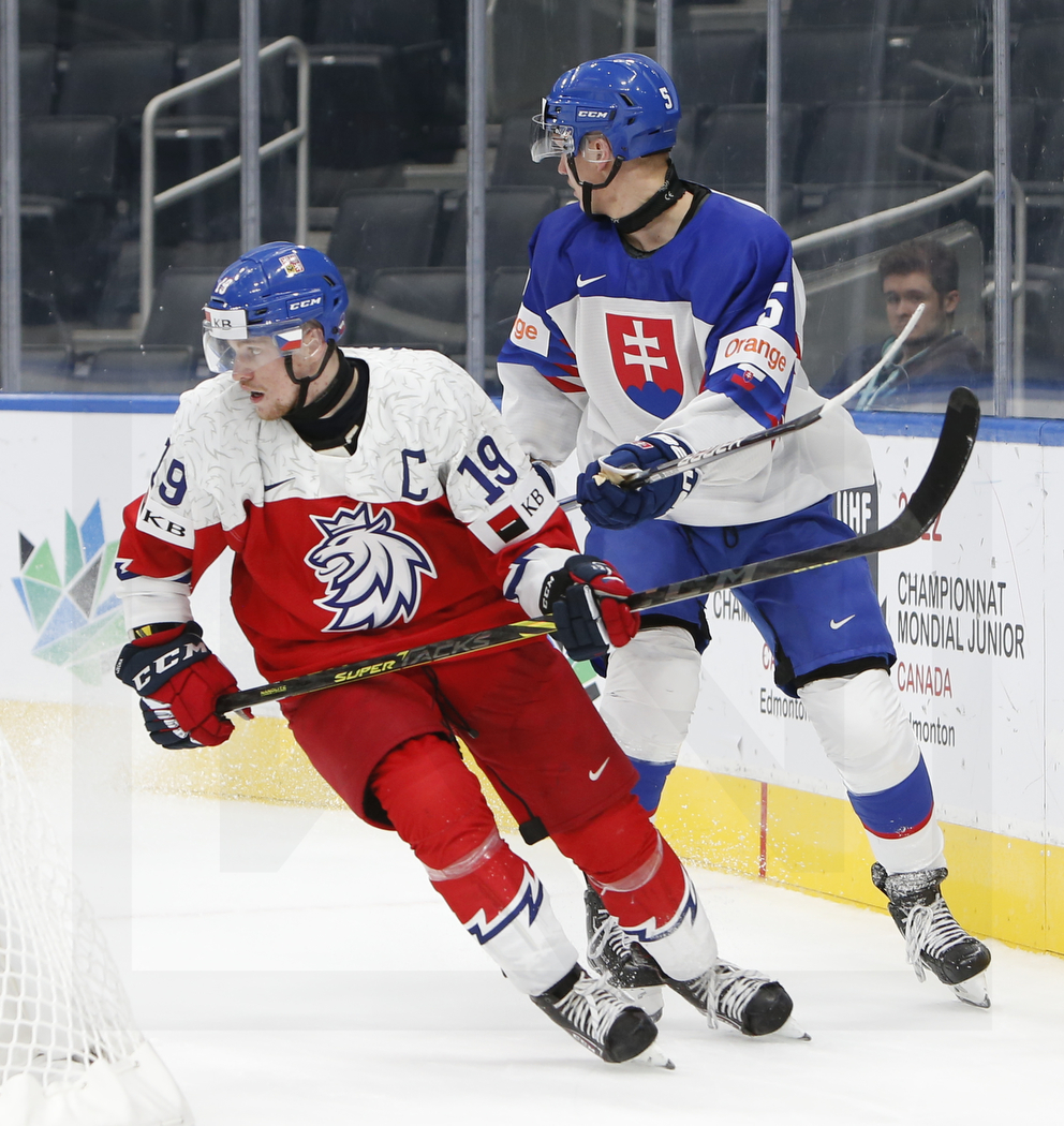 WK20220809_0350 9. August 2022 992 × 1050 WK20220809_0350 EDMONTON, CANADA, 09.Aug. 2022 – Preliminary Round, CZE vs. SVK. Image shows Jan MYSAK #19 (Czech Republic) & Denis BAKALA #5 (Slovakia). Photo: Werner Krainbucher