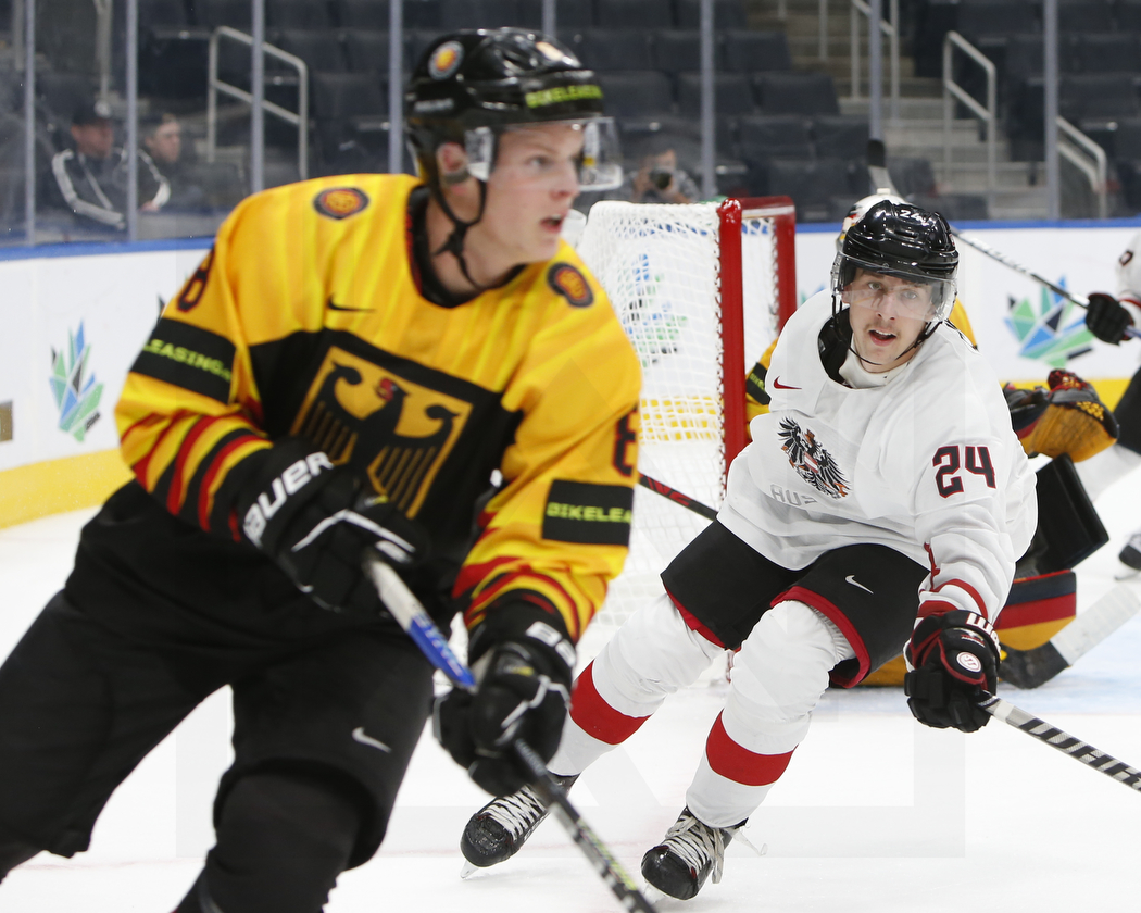 WK20220810_2225 11. August 2022 1050 × 840 WK20220810_2225 EDMONTON, CANADA, 10.Aug. 2022 – Preliminary Round, GER vs. AUT. Image shows Joshua SAMANSKI #8 (Germany) & Lucas THALER #24 (Austria). Photo: Werner Krainbucher