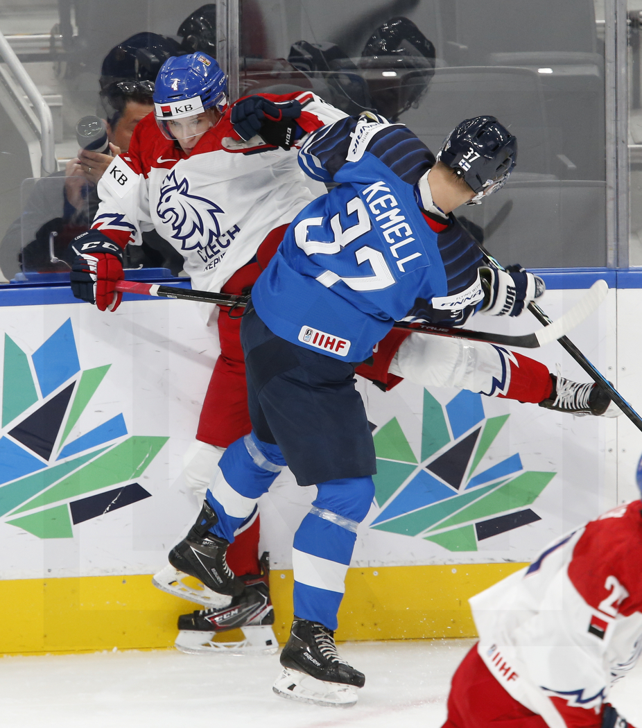 EDMONTON, CANADA, 11.Aug. 2022 – Preliminary Round, FIN vs. CZE. Image shows Jiri TICHACEK #4 (Czech Republic) & Joakim KEMELL #37 (Finland). Photo: Werner Krainbucher