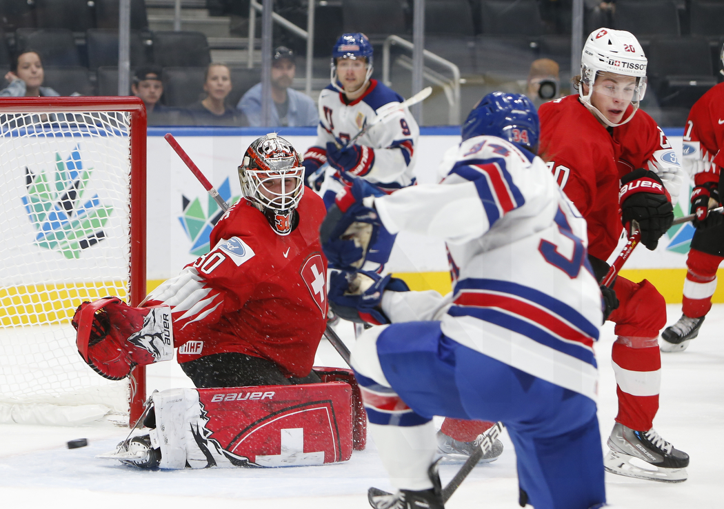 WK20220811_1772 12. August 2022 1050 × 738 WK20220811_1772 EDMONTON, CANADA, 11.Aug. 2022 – Preliminary Round, SUI vs. USA. Image shows Kevin PASCHE #30 (Switzerland), Thomas BORDELEAU #9 (USA), Carter MAZUR #34 (USA) & Marlon GRAF #20 (Switzerland). Photo: Werner Krainbucher