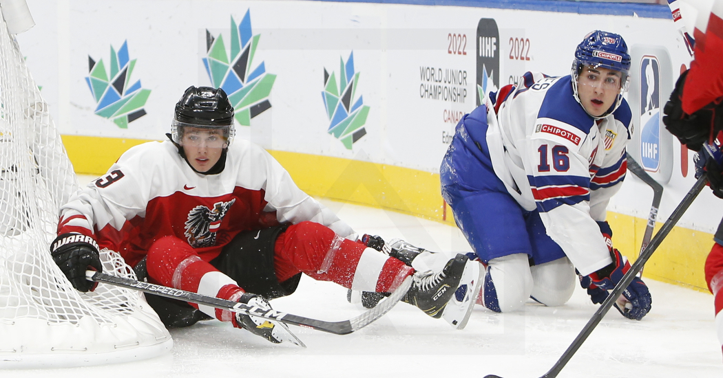 EDMONTON, CANADA, 13.Aug. 2022 – Preliminary Round, AUT vs. USA. Image shows Jonas DOBNIG #23 (Austria) & Dominic JAMES #16 (USA). Photo: Werner Krainbucher