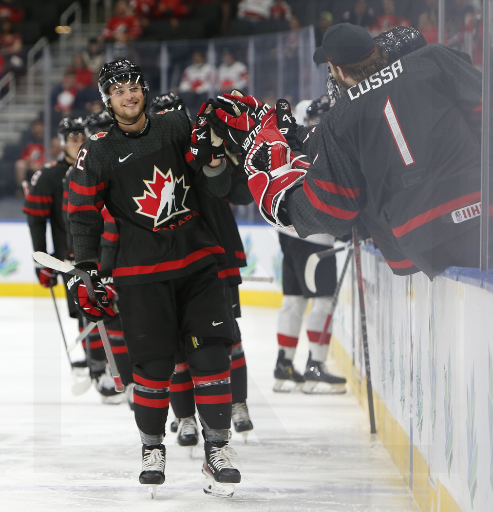 EDMONTON, CANADA, 17.Aug. 2022 – Quarterfinals, CAN vs. SUI. Image shows Tyson FOERSTER #12 (Canada) after his goal. Photo: Werner Krainbucher
