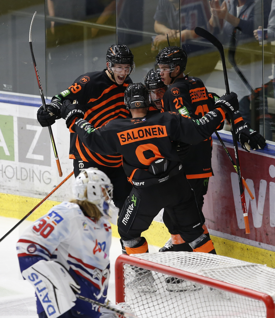WK20220909_0170 9. September 2022 908 × 1050 WK20220909_0170 GRAZ, AUSTRIA, 09.Sep. 2022 – Moser Medical Graz 99ers vs. Adler Mannheim. Image shows 99ers goal celebration. Photo: Werner Krainbucher