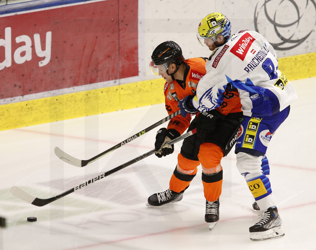 GRAZ, AUSTRIA, 28.Oct. 2022 – Moser Medical Graz 99ers vs. EC iDM Wärmepumpen VSV. Image shows Aleksi SALONEN #9 (Moser Medical Graz 99ers) & Alexander RAUCHENWALD #9 (EC iDM Wärmepumpen VSV). Photo: Werner Krainbucher