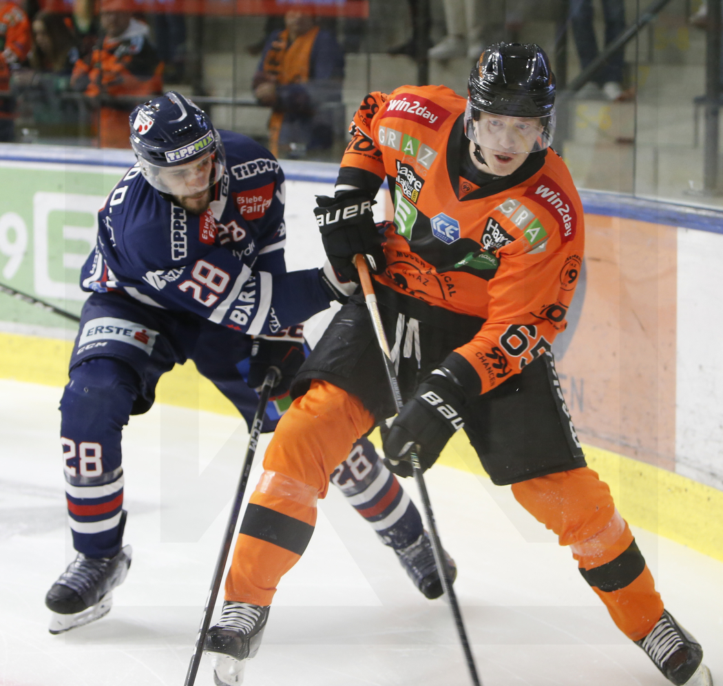 WK20221104_0025 4. November 2022 1050 × 996 WK20221104_0025 GRAZ, AUSTRIA, 04.Nov. 2022 – Moser Medical Graz 99ers vs. Hydro Fehervar AV 19. Image shows Daniel SZABO #28 (Hydro Fehervar AV 19) & Michael KERNBERGER #65 (Moser Medical Graz 99ers). Photo: Werner Krainbucher