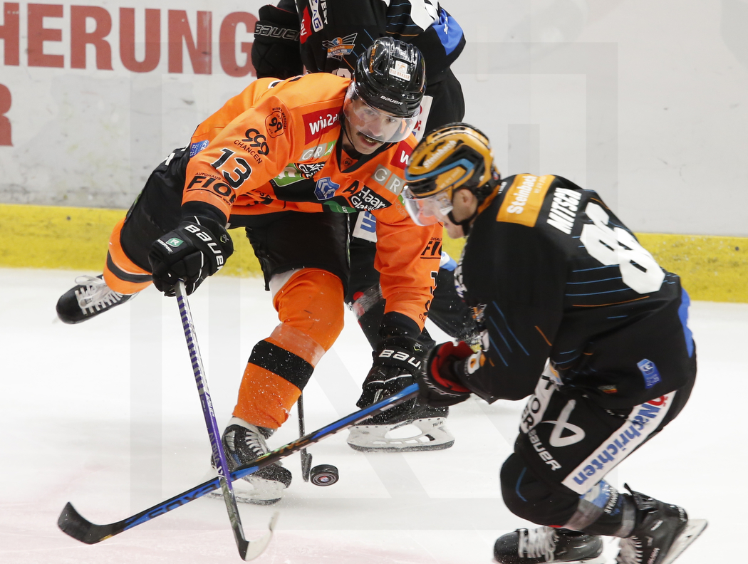 GRAZ, AUSTRIA, 06.Nov. 2022 – Moser Medical Graz 99ers vs. Steinbach Black Wings Linz. Image shows Michael SCHIECHL #13 (Moser Medical Graz 99ers) & Jakob MITSCH #86 (Steinbach Black Wings Linz). Photo: Werner Krainbucher