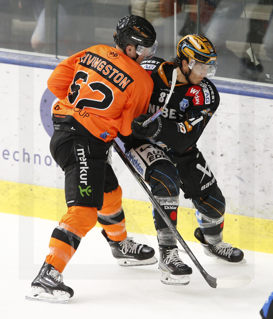 GRAZ, AUSTRIA, 06.Nov. 2022 – Moser Medical Graz 99ers vs. Steinbach Black Wings Linz. Image shows James LIVINGSTON #62 (Moser Medical Graz 99ers) & Ramon SCHNETZER #81 (Steinbach Black Wings Linz). Photo: Werner Krainbucher