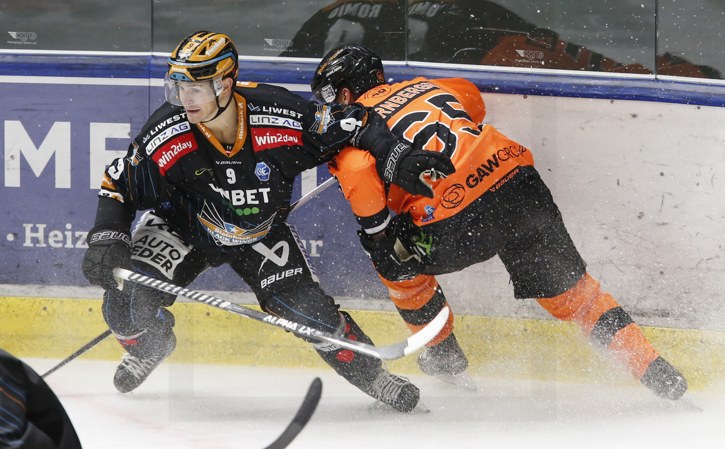 WK20221106_0266 6. November 2022 1050 × 650 WK20221106_0266 GRAZ, AUSTRIA, 06.Nov. 2022 – Moser Medical Graz 99ers vs. Steinbach Black Wings Linz. Image shows Emilio ROMIG #9 (Steinbach Black Wings Linz) & Michael KERNBERGER #65 (Moser Medical Graz 99ers). Photo: Werner Krainbucher