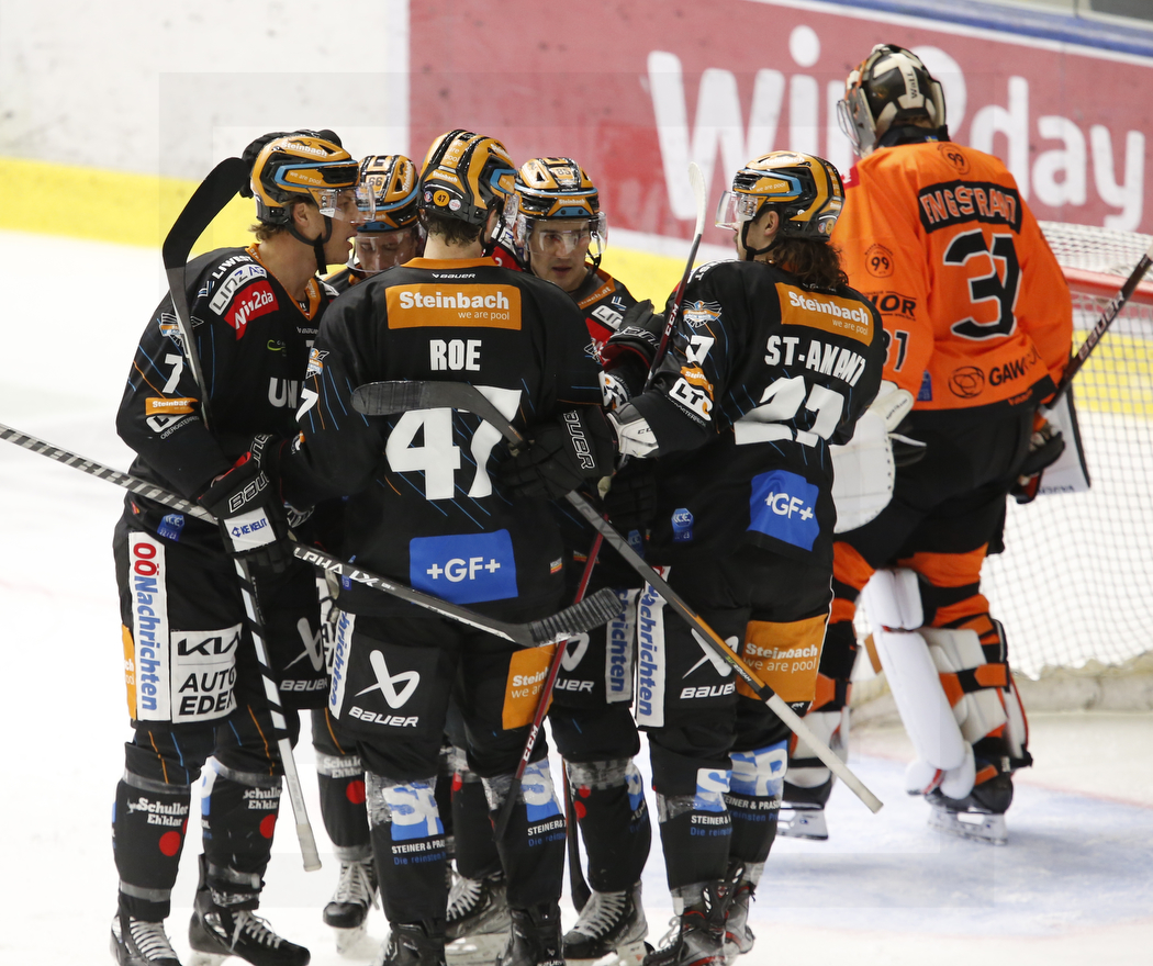 WK20221106_0289 6. November 2022 1050 × 880 WK20221106_0289 GRAZ, AUSTRIA, 06.Nov. 2022 – Moser Medical Graz 99ers vs. Steinbach Black Wings Linz. Image shows Black Wings goal celebration. Photo: Werner Krainbucher