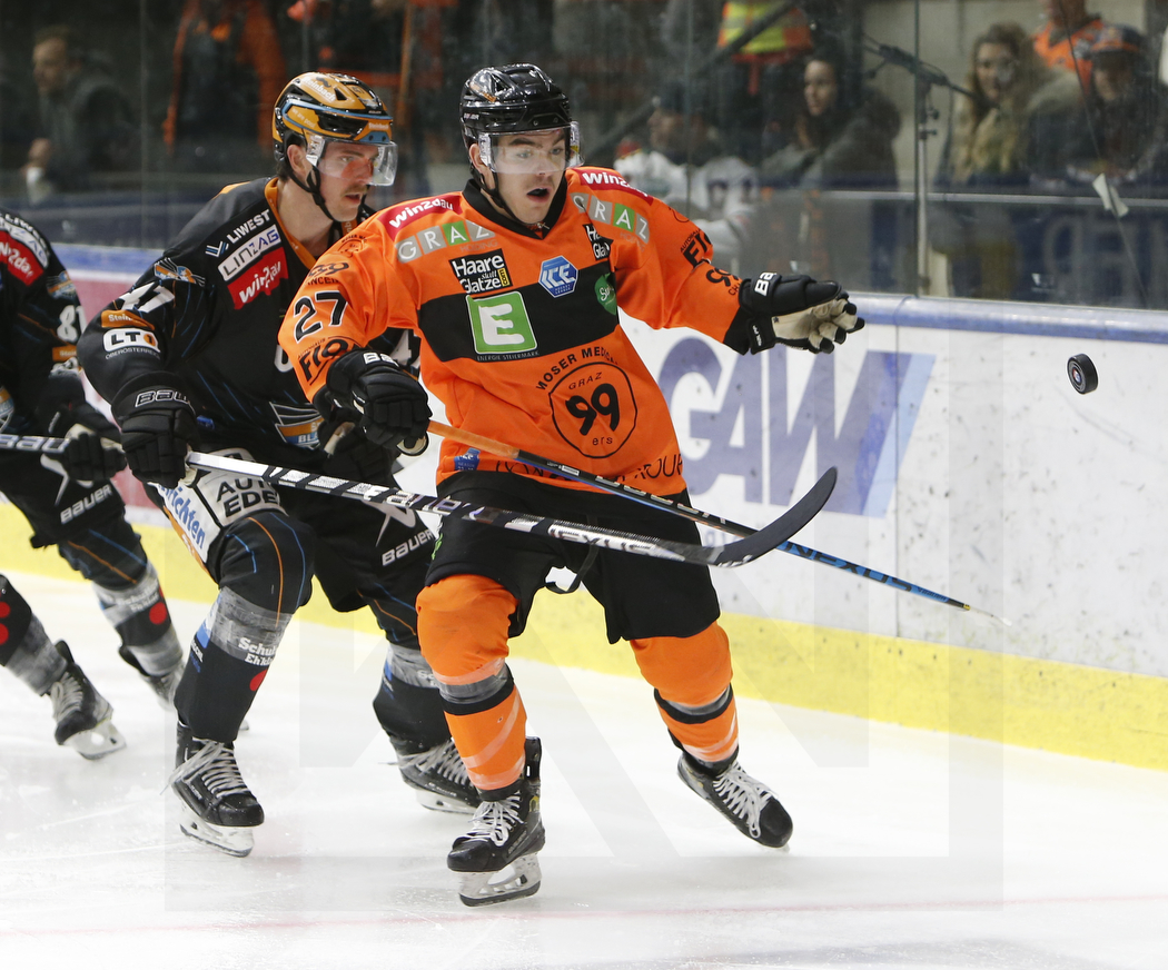 WK20221106_0365 6. November 2022 1050 × 872 WK20221106_0365 GRAZ, AUSTRIA, 06.Nov. 2022 – Moser Medical Graz 99ers vs. Steinbach Black Wings Linz. Image shows Logan ROE #47 (Steinbach Black Wings Linz) & Jakob ENGELHART #27 (Moser Medical Graz 99ers). Photo: Werner Krainbucher