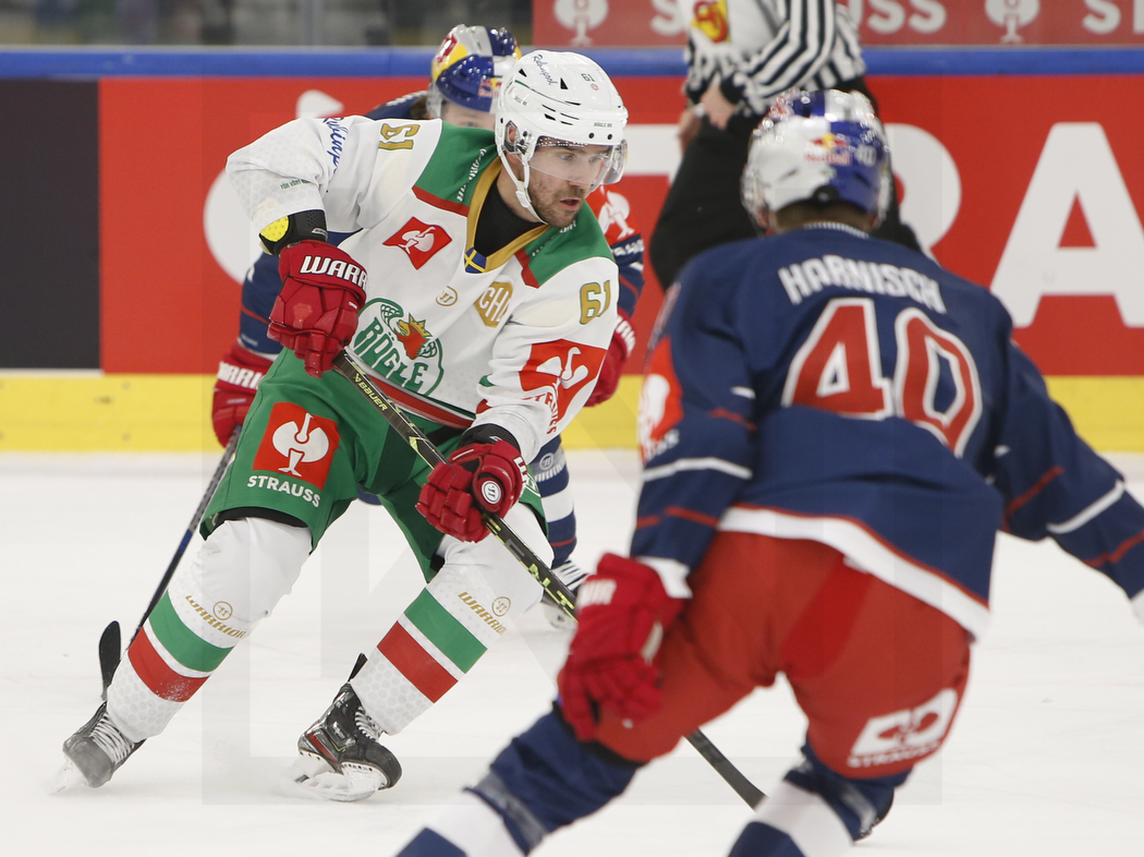 SALZBURG, AUSTRIA, 15.Nov. 2022 – EC Red Bull Salzburg vs. Rögle Ängelholm. Image shows Ludvig LARSSON #61 (Rögle Ängelholm) & Tim Luca HARNISCH #40 (EC Red Bull Salzburg). Photo: Werner Krainbucher