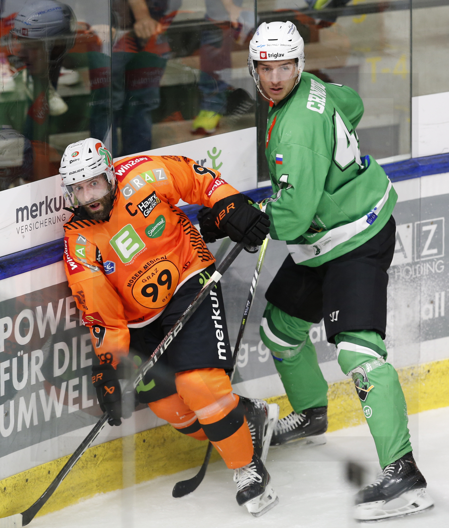 WK20230922_0303 22. September 2023 894 × 1050 WK20230922_0303 GRAZ, AUSTRIA, 22.Sep. 2023 – Moser Medical Graz 99ers vs. HK SZ Olimpija. Image shows Taylor MATSON #9 (Moser Medical Graz 99ers) & Aljosa CRNOVIC #44 (HK SZ Olimpija). Photo: Werner Krainbucher