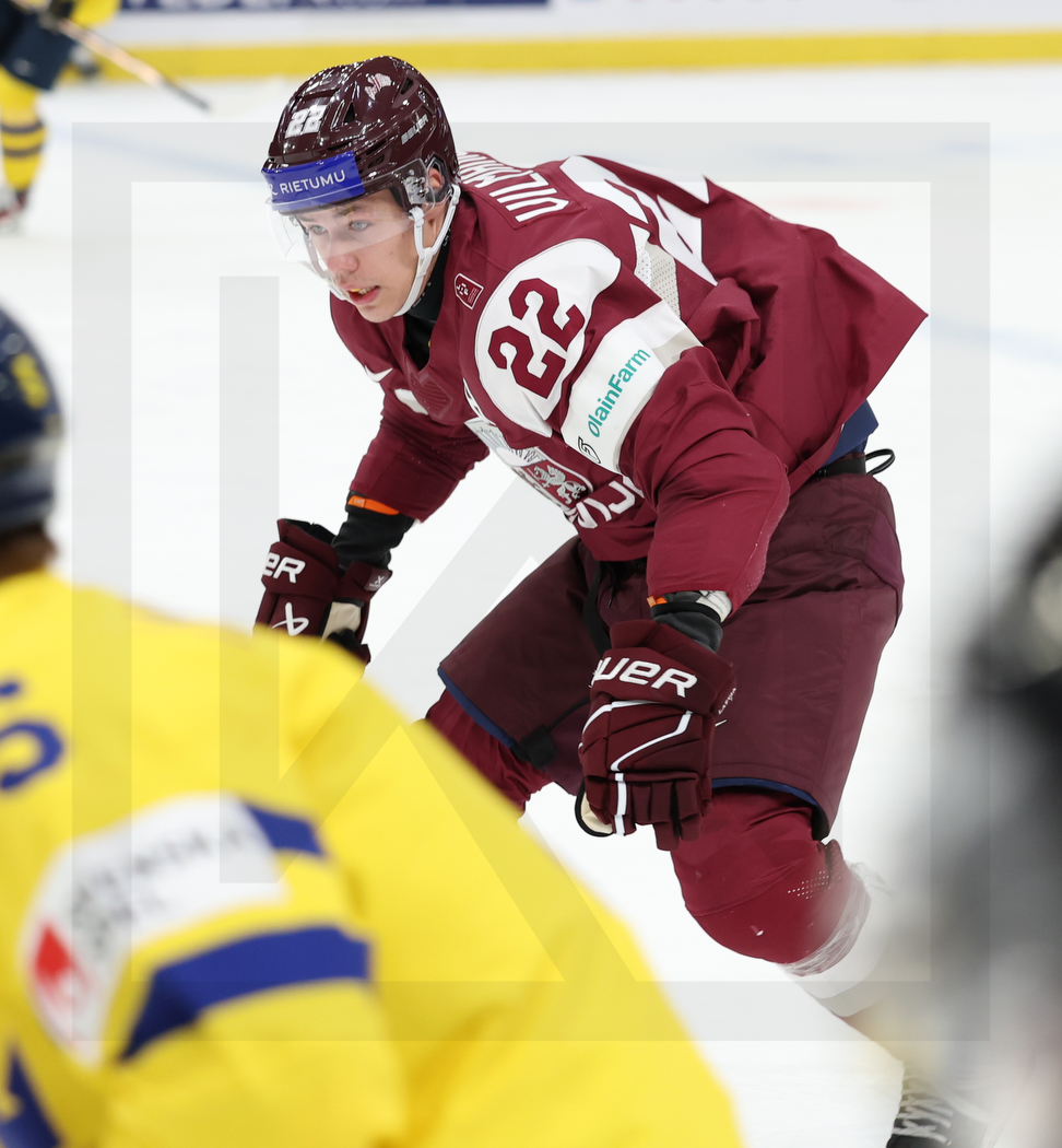 GOTHENBURG, SWEDEN, 26.Dec. 2023 – World Juniors, SWE vs. LAT. Image shows Sandis VILMANIS #22 (Latvia). Photo: Werner Krainbucher