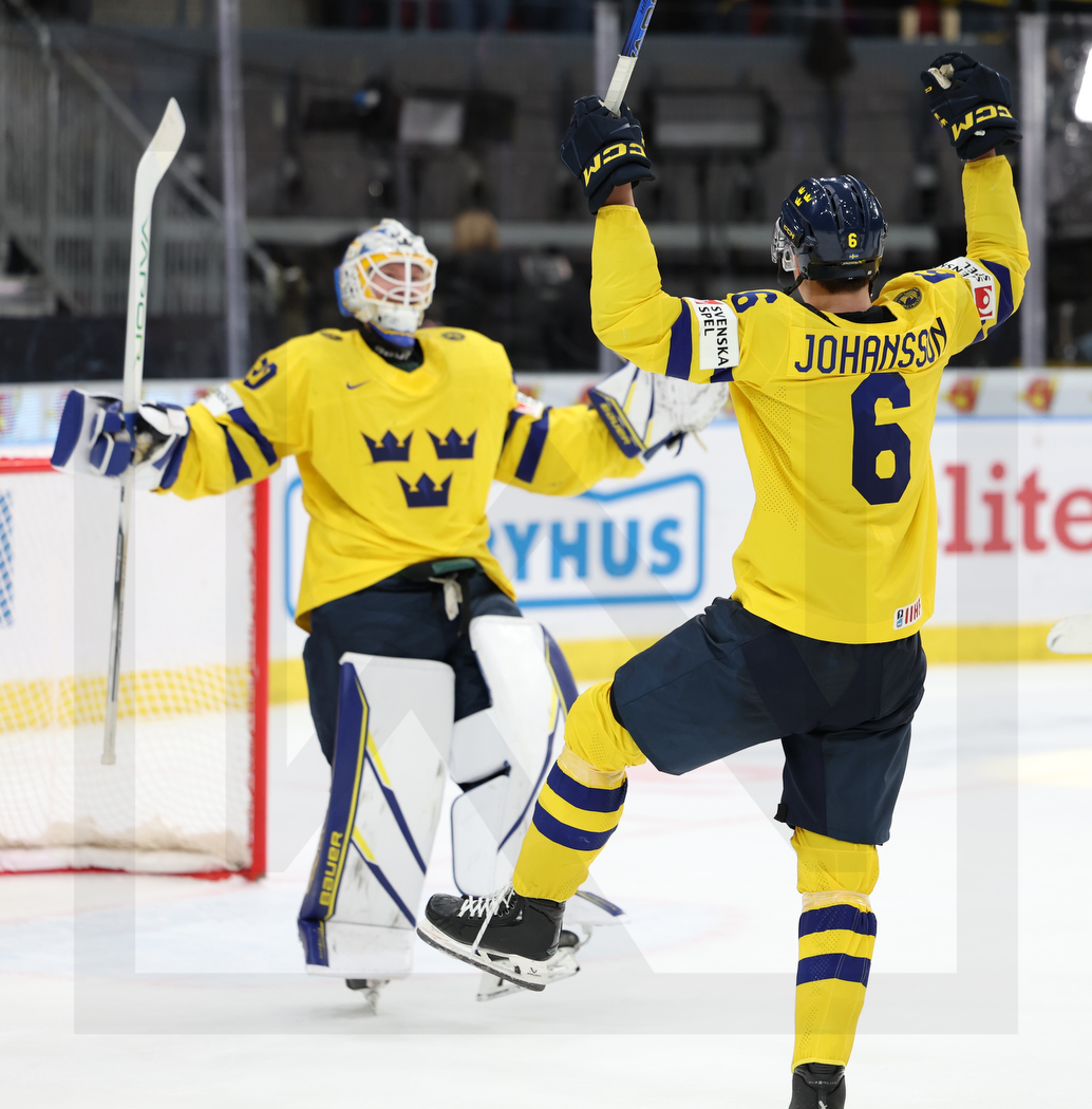 WK20231228_0934 28. Dezember 2023 1034 × 1050 WK20231228_0934 GOTHENBURG, SWEDEN, 28.Dec. 2023 – World Juniors, GER vs. SWE. Image shows Melker THELIN #30 (Sweden) & Anton JOHANSSON #6 (Sweden). Photo: Werner Krainbucher