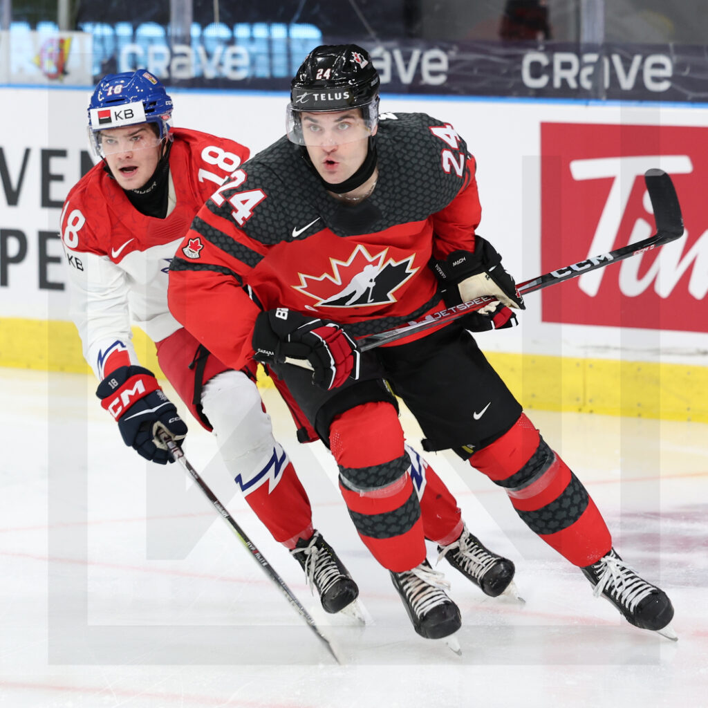 WK20240102_0317 2. Januar 2024 1050 × 1050 WK20240102_0317 GOTHENBURG, SWEDEN, 02.Jan. 2024 – World Juniors, Quarterfinals, CAN vs. CZE. Image shows Matej MASTALIRSKY #18 (Czech Republic) & Denton MATEYCHUK #24 (Canada). Photo: Werner Krainbucher