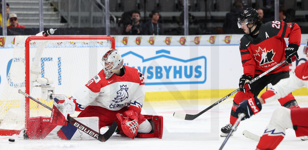 WK20240102_1282 2. Januar 2024 1050 × 514 WK20240102_1282 GOTHENBURG, SWEDEN, 02.Jan. 2024 – World Juniors, Quarterfinals, CAN vs. CZE. Image shows Michael HRABAL #30 (Czech Republic) & Matthew SAVOIE #26 (Canada). Photo: Werner Krainbucher