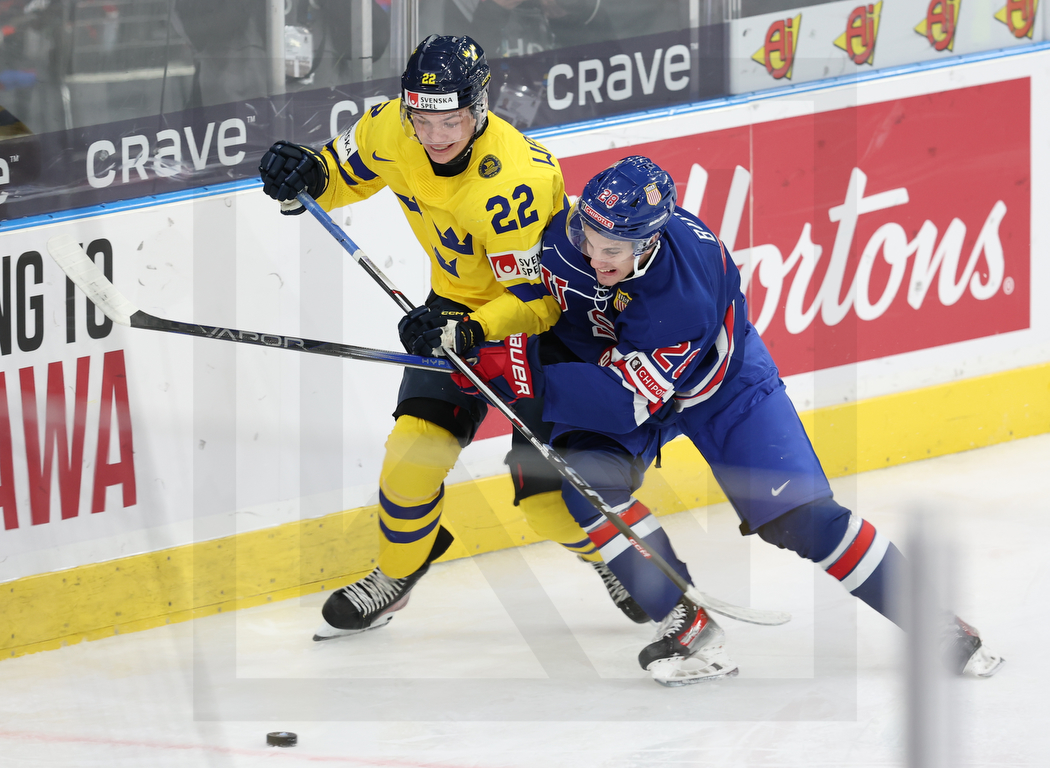 WK20240105_0521 5. Januar 2024 1050 × 768 WK20240105_0521 GOTHENBURG, SWEDEN, 05.Jan. 2024 – World Juniors, Gold Medal Game, USA vs. SWE. Image shows Anton WAHLBERG #22 (Sweden) & Zeev BUIUM #28 (USA). Photo: Werner Krainbucher