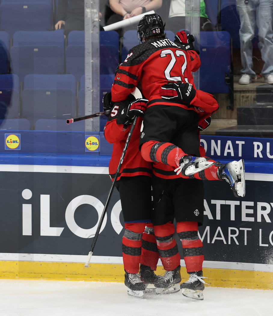WK20240504_1440 4. Mai 2024 908 × 1050 WK20240504_1440 ESPOO, FINLAND, 04.May. 2024 – U18 World’s; Semifinal, CAN vs. SWE. Image shows Canada’s goal celebration. Photo: Werner Krainbucher