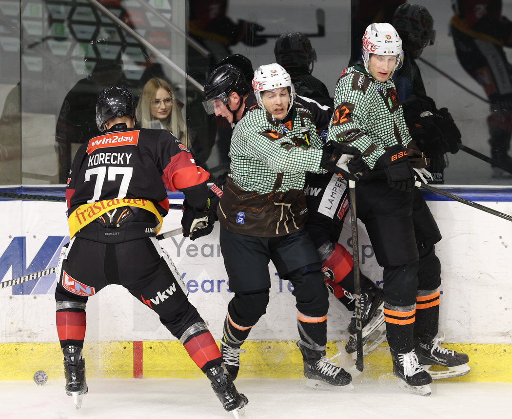 WK20241103_0249 3. November 2024 1050 × 858 WK20241103_0249 GRAZ, AUSTRIA, 03.Nov. 2024 – Moser Medical Graz 99ers vs. Pioneers Vorarlberg. Image shows Ivan KORECKY #77 (Pioneers Vorarlberg), Manuel GANAHL #17 (Moser Medical Graz 99ers) & Paul HUBER #52 (Moser Medical Graz 99ers). Photo: Werner Krainbucher