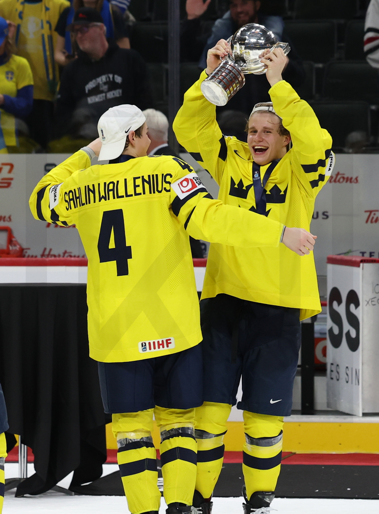 ST. PAUL, USA, 05, Jan, 2026, World Juniors, Gold Medal Game, SWE vs. CZE. Image shows Sweden with the World Juniors trophy. Photo: Werner Krainbucher (Puckfans.at)