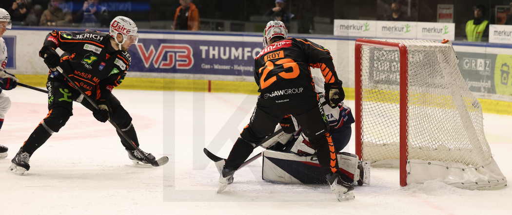 GRAZ, AUSTRIA, 02, Apr, 2026, Moser Medical Graz 99ers vs. Hydro Fehervar AV 19. Image shows 2nd goal from Paul HUBER #52 (Moser Medical Graz 99ers). Photo: Werner Krainbucher