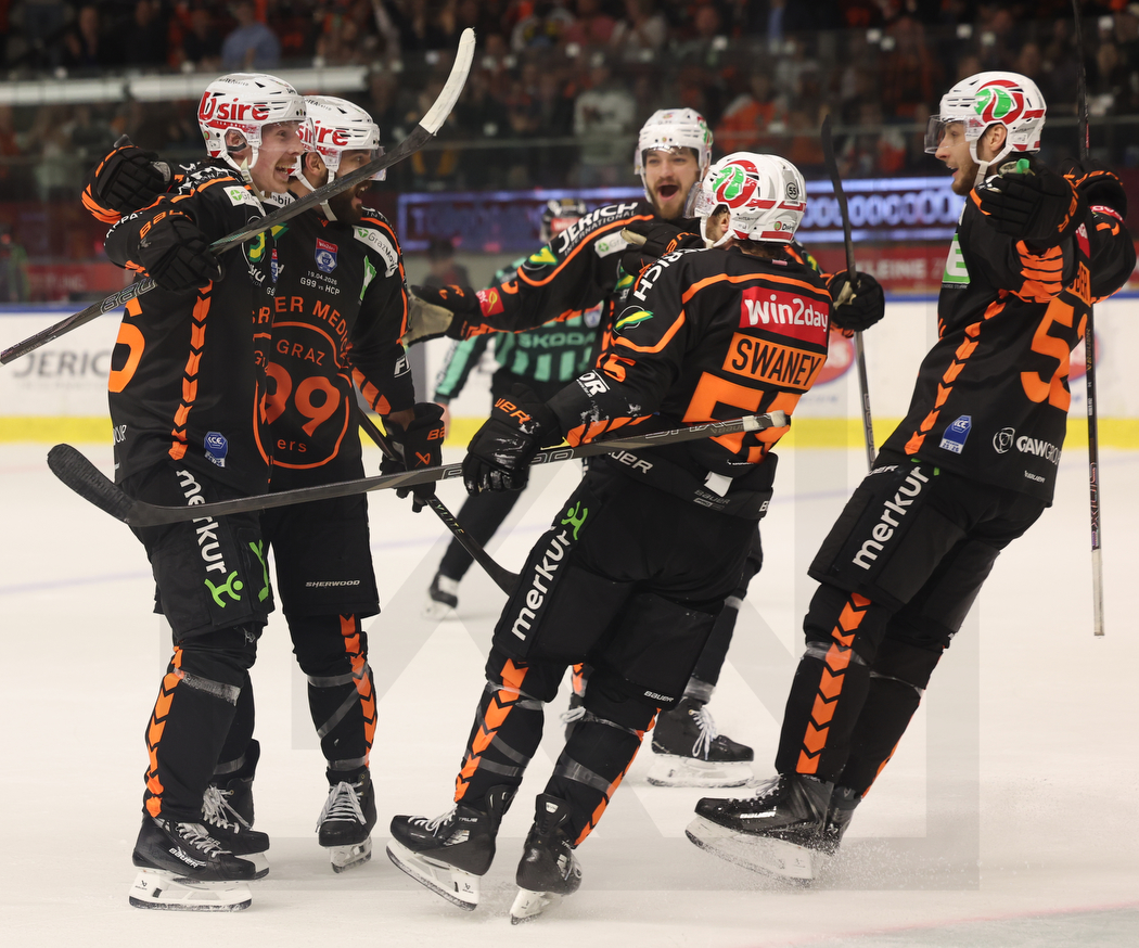 GRAZ, AUSTRIA, 19, Apr, 2026, Moser Medical Graz 99ers vs. HC Falkensteiner Pustertal. Image shows goal celebration 99ers. Photo: Werner Krainbucher