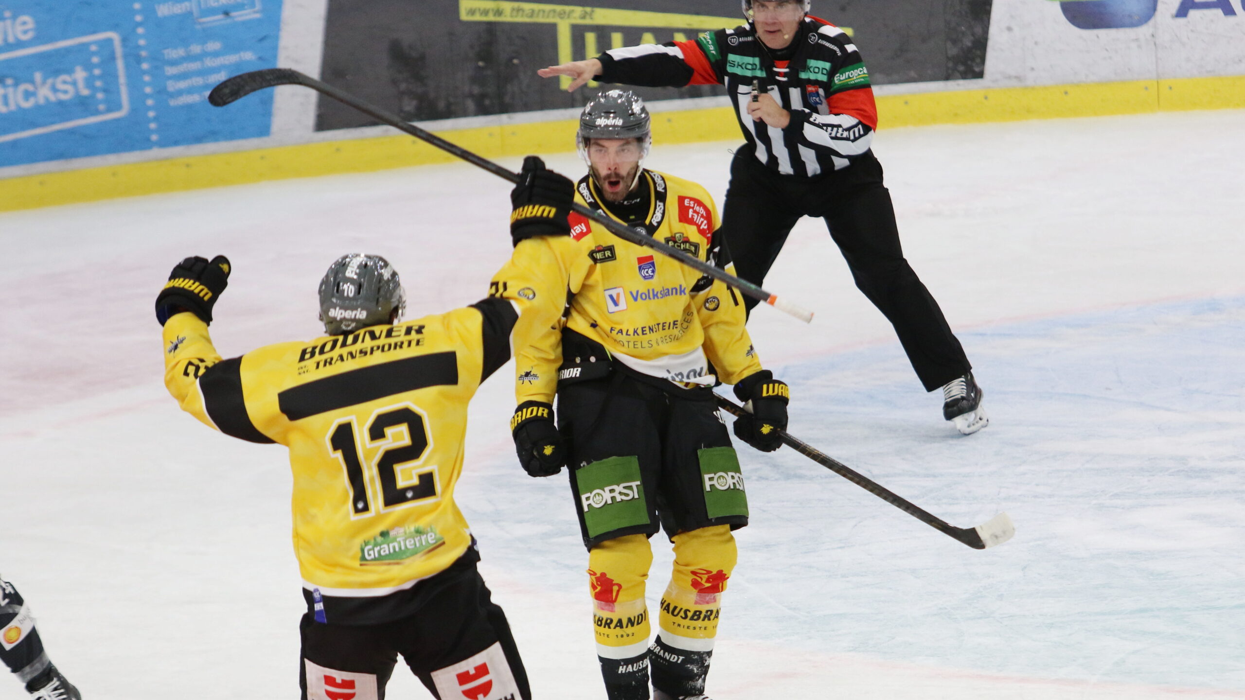 6T4A8822 4. Oktober 2025 2560 × 1440 Wölfe holen zweiten Auswärtssieg in Folge Cole Bardreau #10(12), Markus Lauridsen #11, ICEHL Round 8 Vienna Capitals – HC Pustertal, Steffl Arena, © Puckfans.at / Andreas Robanser