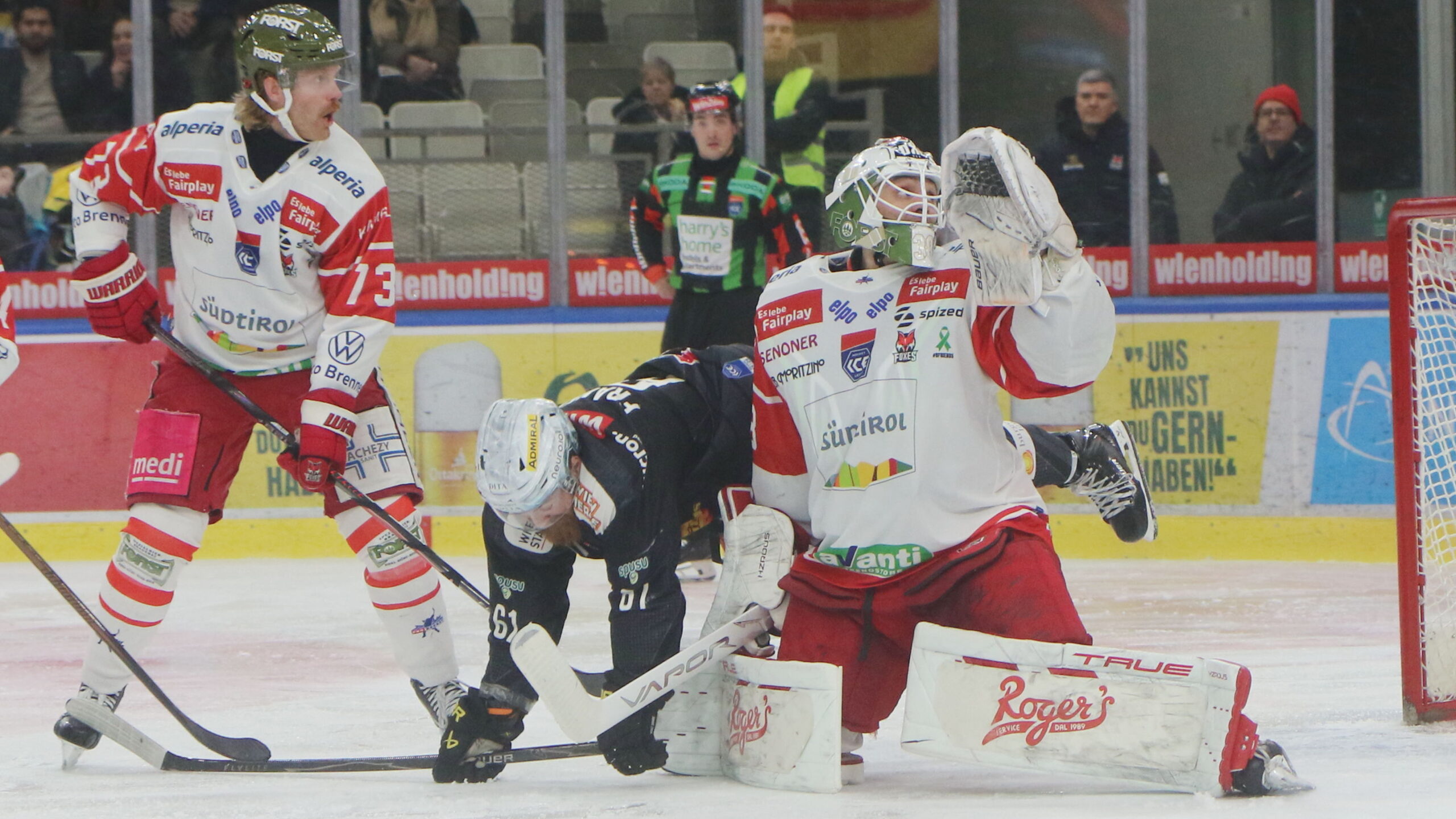 6T4A8704 25. Januar 2026 2560 × 1440 Wraneschitz sichert 3:0 Sieg gegen Bozen Philip Samuelsson #73, Zane Franklin #61, Samuel Harvey #38, ICEHL Round 43 Vienna Capitals – HCB Südtirol, Steffl Arena, © Puckfans.at / Andreas Robanser